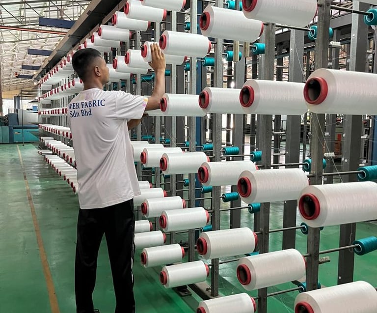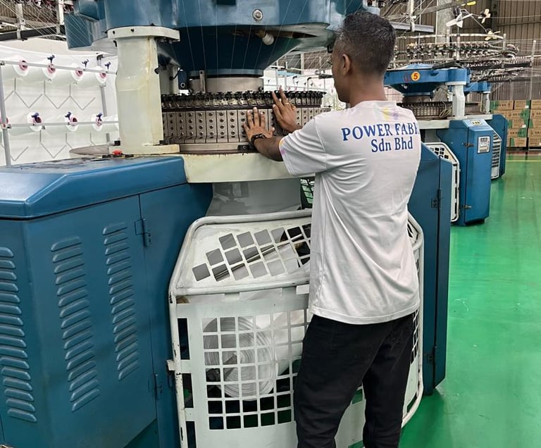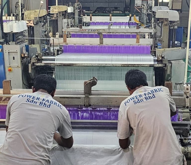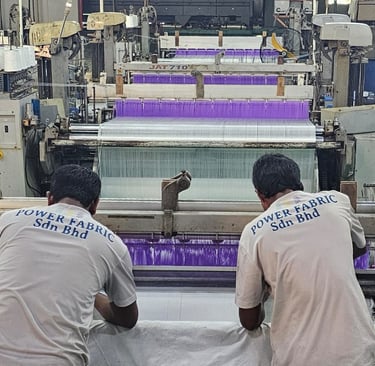 In Power Fabric, we are able to adapt to many different techniques of textile production. In addition to our knitting and weaving capabilities, we have a large collection of supporting machines such as dyeing mill, warping machine, washing and drying machine, stentering machine, flame lamination machine and yarn twisting machines. After the specifications of the order is confirmed, our laboratory and RND department carefully finalizes every detail such as color, weight, width and the touch. The smooth connection between our departments is carefully planned and executed using the latest computer technology to minimize defects or imperfections.